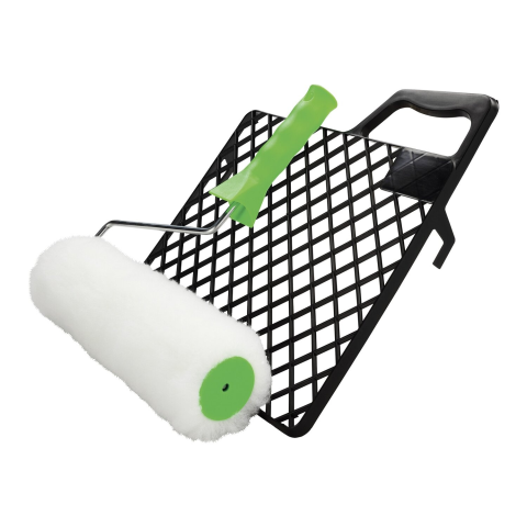 Ez a 3 részes festőszett egy kengyelre szerelt univerzális Vestan-hengerből áll, és 25 cm széles. Továbbá tartalmaz egy fogantyút, valamint egy fekete festéklehúzó rácsot (26 cm x 24 cm). Ezzel az alapfelszereléssel kifestheti saját otthonát. A henger szálhosszúsága 20 mm. A fogantyú és a festéklehúzó rács PP-műanyagból készül.