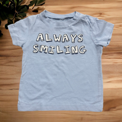Világoskék feliratos felső Egyenes szabású, kerek nyakkivágású, vállnál patentos. Nincs benne méret, figyeld a mért adatokat. Hibátlan állapotú.
