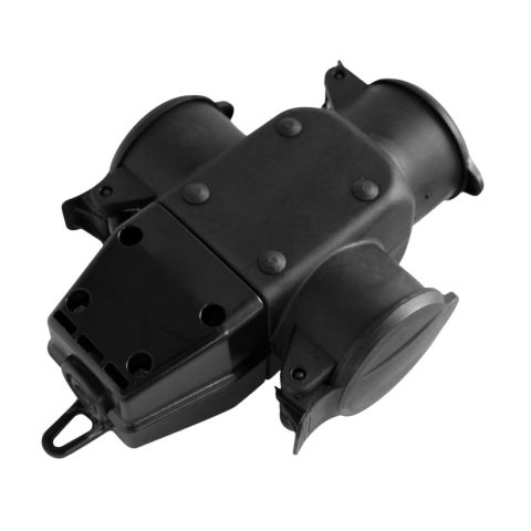 Átalakító, 3 csatlakozóaljzat, földelt, 90 fokban elforgatott