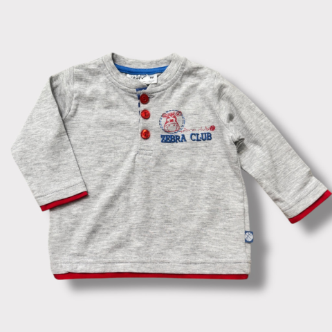 Zebra mintás felső Egyenes szabású, kerek nyakkivágású, nyaknál gombos. Kellemes pamutos (90%) anyag. Hibátlan állapotú.