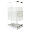 Szögletes zuhanykabin tálcával, króm profilokkal, 6 mm vastag biztonsági üveggel. Az üveg középső részén lévő mintás felület megakadályozza, hogy be lehessen látni a fülkébe. Az esztétikus megjelenésének köszönhetően bármelyik fürdőszobába felszerelhető.