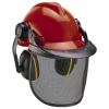 Munkavédelmi sisak - rendkívül tartós műanyagból készült, állítható fejpánt egykezes működtetéssel, az arcvédő állítható és eltávolítható, a fülvédő elforgatható és magassága állítható