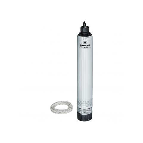 Búvárszivattyú alkalmas kúthoz - elektromos, nyomás, 1000 W teljesítmény, 6500 l/h szállítási teljesítmény, 45 m szállítási magasság, max. merülési mélység 19 m, kábel hossza 22 m, csatlakozó átmérője 42mm (1 1/4"), konstrukció anyaga fém, mérete 23 × 14 × 73 cm (Ma×Sz×Mé), átmérője 9,9 cm A kert öntözéséhez jól jöhet az Einhell GC-DW 1000 N búvárszivattyú. Keskeny profilja alkalmassá teszi a kutakban, víztartályokban és ciszternákban való könn