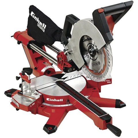 Einhell TE-SM 2534 Dual gérvágó (4300870) Integrált húzás funkció széles munkadarabokhoz Forgótányér pontos szögbeállítással szögletes vágásokhoz A fűrészfej balra és jobbra dönt a gérvágáshoz A lézerrel (hálózati táplálással) rendelkezik a pontos