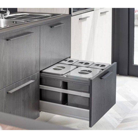 Ekotech JAZZ 4 vödör fiókszemetes: Praktikus hulladékgyűjtés a konyhába 🗑️ Ez a 230 mm magas, 4 vödörös fiókszemetes tökéletes megoldás a konyhai hulladék szelektív gyűjtésére. A fiókba épített kialakítás helytakarékos és esztétikus megoldást kínál....