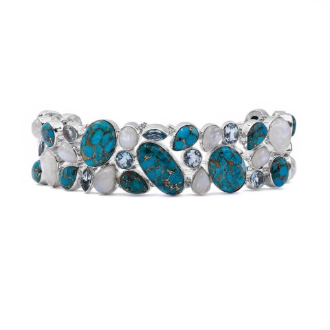 1 kép Ékszer ABC Egyedi ezüst bronz türkiz, kék topáz és holdköves karlánc