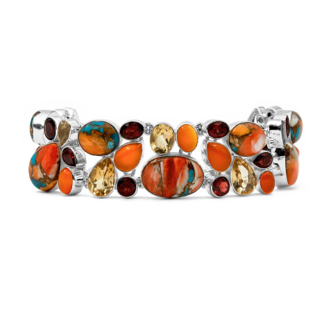 A karlánc szélessége ~ 23 mm, hossza választható 16,6 vagy 18 vagy 19,5 cm. A középen lévő ovális osztriga türkiz kő mérete ~ 18 x 12 mm, a csepp alakú karneol kövek mérete ~ 10 x 7 mm, a csepp alakú csiszolt citrin kövek mérete ~ 8 x 12 mm, a csepp alakú
