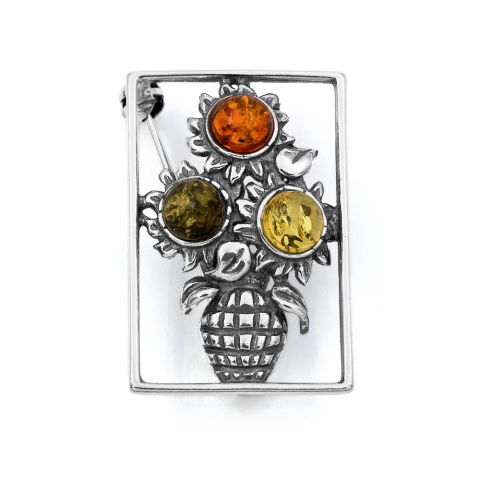 1 kép Ékszer ABC Ezüst borostyán köves kitűző "napraforgók"