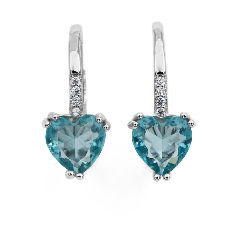 A fülbevaló hossza 18 mm, szélessége 8 mm. A világoskék csiszolt szív alakú cirkónia kő mérete ~ 7 x 7 mm.