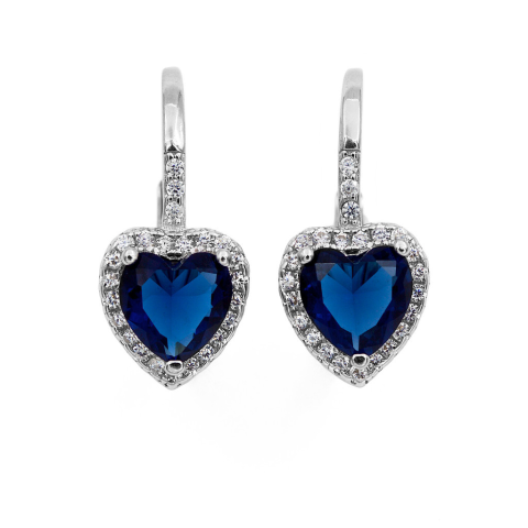 A fülbevaló hossza 16,5 mm, szélessége 8 mm. A csiszolt, sötétkék, szív alakú cirkónia kő mérete ~ 11 x 11 mm.