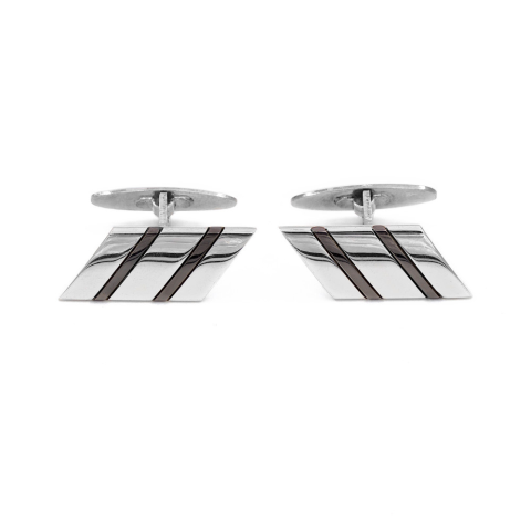 A kézelőgomb (mandzsettagomb) feje 10 x 23 mm. A sötétszürke (hematit színű) csíkok 1,5 mm szélesek.