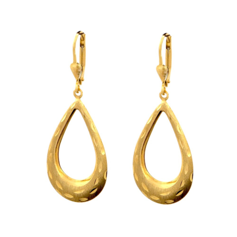 Ez a 14 karátos arany fülbevaló tökéletes választás mindazoknak, akik az eleganciát és a nőiességet keresik. A különleges csepp alakú design modern és klasszikus stílust ötvöz, így bármilyen alkalomra ideális. A matt és fényes felületek játékos fénytörése