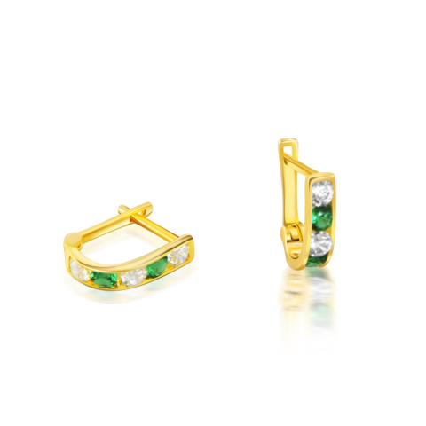 Fedezd fel a 14 karátos aranyból készült gyönyörű gyermek fülbevalót, amely zöld és átlátszó kristályokkal díszítve varázsolja el a kicsiket. A kristályok ragyogása minden pillanatot különlegessé tesz, miközben a magas minőségű anyagok és precíz kidolgozá