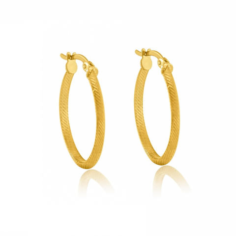 Ez az elegáns, 14 karátos arany fülbevaló klasszikus, mégis modern megjelenést biztosít minden alkalomra. A felület különleges, váltakozó fényű mintázata egyszerre játékos és kifinomult, a fehérarany bevonatú részek finoman megtörik a fényt, így viselés k