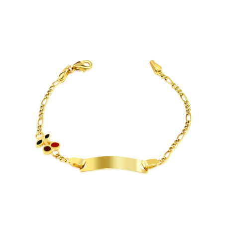 14 karátos aranyból készült karlánc gyermekek részére, cseresznye betéttel. Tartalmaz egy kb. 5 mm x 23 mm -es felületet, melyre akár gyermekünk nevét gravírozhatjuk. Ez a csodálatos 14 karátos aranyból készült karlánc gyermekednek tökéletes kiegészítő l
