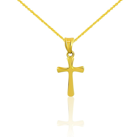 14 karátos arany kereszt medál – klasszikus, időtálló szimbólum Ez a finom kidolgozású, 14 karátos arany kereszt medál letisztult formájával a hit és az elegancia tökéletes harmóniáját képviseli. Apró mérete ellenére látványos ragyogást kölcsönöz viselőj