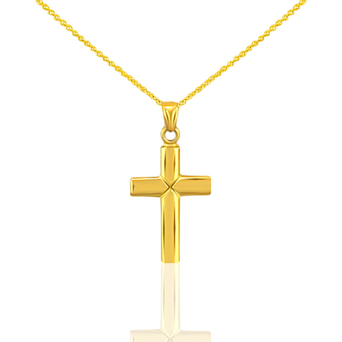 14 karátos aranyból készült keresztet ábrázoló egyszerű kialakítású üreges medál. Súlya kb.: 1,35 g. Magassága függő nélkül kb.: 3,0 cm. Legnagyobb szélessége kb.: 1,8 cm A képen látható anker lánc nem képezi a termék részét, az külön megvásárolható:
