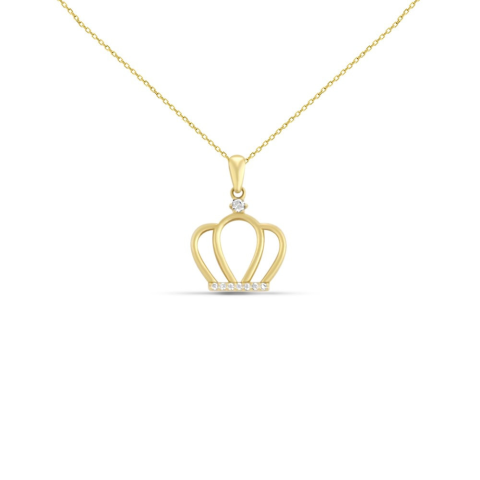 Ez a finoman kidolgozott, 1 grammos, 14 karátos arany korona medál tökéletes választás mindazoknak, akik királynőként szeretnék érezni magukat a hétköznapokban is. A nyitott, elegáns koronaformát csillogó cirkóniakövek díszítik, kiemelve a medál különlege