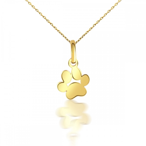 14 karátos aranyból készült kutyamancsot ábrázoló medál. Teljes magassága függő nélkül kb.: 14,00 mm. Teljes szélessége kb.: 11,50 mm Vastagsága kb.: 0,35 mm Súlya kb.: 0,70 g. A képen látható anker lánc nem képezi a termék részét, az külön megvásárolhat