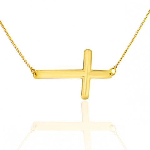 Ez a lenyűgöző 14 karátos arany nyaklánc tökéletes választás minden nő számára, aki szereti az elegáns és időtlen ékszereket. A három fektetett kereszt medál nemcsak stílusos megjelenést kölcsönöz, hanem mély szimbolikus jelentéssel is bír. A kereszt az e