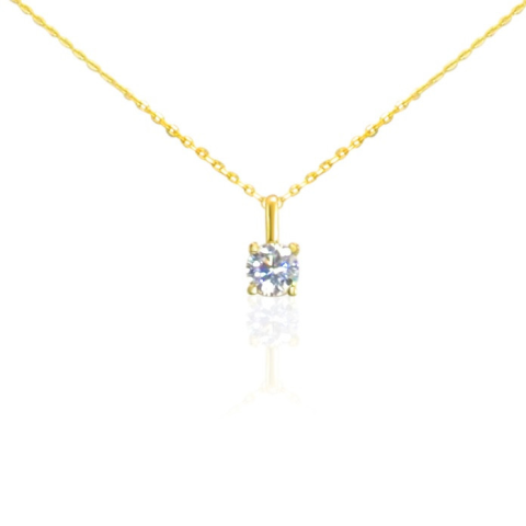 14 karátos arany nyaklánc cirkónia kristállyal – az elegancia letisztult megtestesítője Ez a gyönyörű, 14 karátos sárga aranyból készült nyaklánc finom, mégis ragyogó kiegészítője lehet bármilyen megjelenésnek. Középpontjában egy tökéletesen csiszolt cir