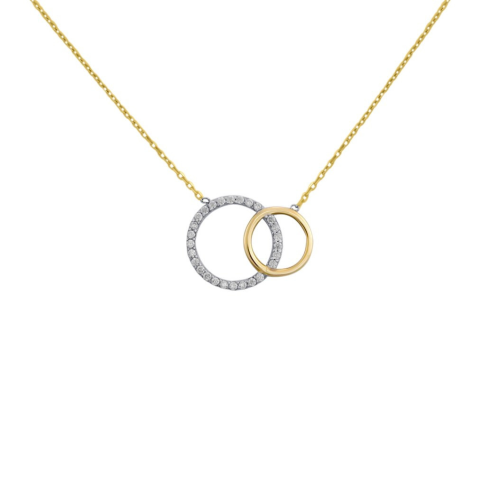 Engedd, hogy a 14 karátos aranyból készült nyaklánc az összetartozást jelképezze számodra! A két egymásba fonódó karika medál a szeretet és az egység szimbóluma, ahol az egyik karika ragyogó cirkónia kristályokkal van díszítve, hogy különleges csillogást