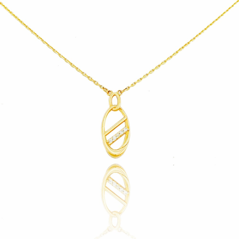Ékszerkirály 14k arany nyaklánc, ovális, kristályos medállal