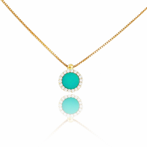 Ez a lenyűgöző 14 karátos arany nyaklánc, egy elegáns zöld kristály medállal, a nőiesség és a stílus megtestesítője. A medált körülölelő csillogó cirkónia kristályok minden fényviszonyban káprázatosan ragyognak, így garantáltan magadra vonod a figyelmet.