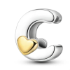 Fedezd fel az elegancia és a személyesség tökéletes kombinációját ezzel az ezüst betű charm-mal, amely a 'C' betűt ábrázolja. A 925 sterling ezüst finom csillogása és az aranyszínű szív részlet különleges stílust kölcsönöz neki, amely bármilyen karkötőt v