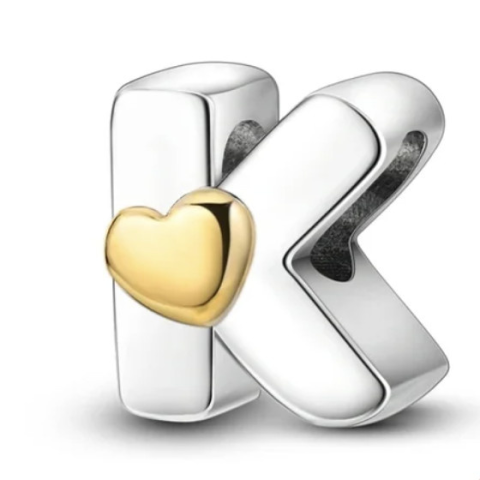 Ez az elegáns, K betűt formáló charm tökéletes választás, ha szeretnéd kifejezni egyedi stílusodat vagy különleges üzenetet szeretnél közvetíteni. Az 925 sterling ezüstből készült ékszer finom aranyszínű szív díszítéssel gazdagítja megjelenését, így a kla