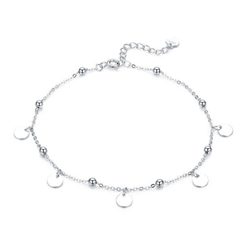 Ezüstből készült bokalánc érmékkel és gyöngyökkel díszítve. Hossza 25 cm, súlya 2.3 g. A termék anyaga: 925 sterling ezüst, amit a magyar szabályoknak megfelelően: 2g feletti termék esetén a termékbe ütött vagy gravírozott névjel és/vagy fémjel tanúsít.Mi
