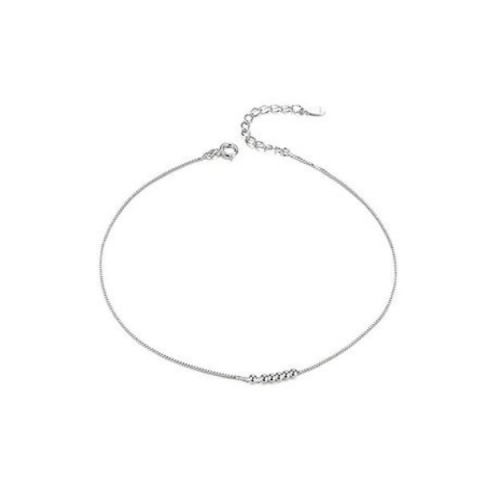 Ezüst bokalánc gyöngyökkel Ezüst bokalánc platinabevonattal, apró gyöngyökkel díszítve. Hossza 22-26 cm. A termék anyaga: 925 sterling ezüst, amit a magyar szabályoknak megfelelően: 2g feletti termék esetén a termékbe ütött vagy gravírozott névjel és/vagy