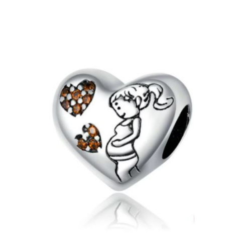 Ez a lenyűgöző ezüst charm tökéletes választás a babavárás örömteli időszakának megünneplésére. A 925 sterling ezüstből készült, szív alakú charm cirkóniumkristállyal van díszítve, amely finom eleganciát kölcsönöz minden megjelenéshez. A kismama motívum k