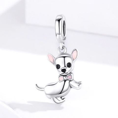 Ez a bájos csivava charm tökéletes választás azoknak, akik szeretik a kis termetű, de nagy szívű kutyákat. Az aprólékosan kidolgozott, 925 sterling ezüstből készült ékszer finom eleganciát kölcsönöz bármely karkötőnek vagy nyakláncnak. Méretének köszönhet