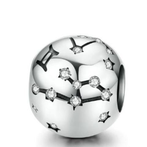 Ez az elegáns ezüst charm tökéletes választás az Ikrek csillagjegy szerelmeseinek. Az aprólékos kidolgozású charm 925-ös sterling ezüstből készült, és ragyogó cirkóniumkristályokkal van díszítve, amelyek még különlegesebbé teszik. Kompakt mérete, 1.1 x 1