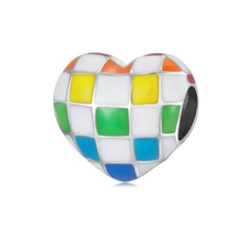 Ez az elbűvölő ezüst charm, amelyet színes zománcozás díszít, egy igazán különleges ékszer, amely bármely karkötőt vagy nyakláncot feldob. Az 1.1 × 1.2 cm méretű kockás szív alakú medál finom kidolgozásával és 2.1 grammos súlyával igazán könnyed viselet.