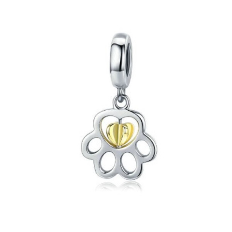 Ez a lenyűgöző ezüst charm egy kutyamancs gyönyörű megjelenítésével teszi különlegessé az ékszereidet. A 925 sterling ezüst alapanyag aranyozással díszített, amely elegánsan csillog a fényben, és figyelemfelkeltő kiegészítést nyújt bármely karkötőhöz vagy
