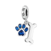 Az ezüst charm, amelyet egy kék cirkóniumkristályos kutyamancs és csont motívum díszít, tökéletes kiegészítője lehet bármely karkötőnek vagy nyakláncnak. A 925-ös sterling ezüstből készült, 0.9 x 2.5 cm méretű, mindössze 2.3 gramm súlyú ékszer finom elega