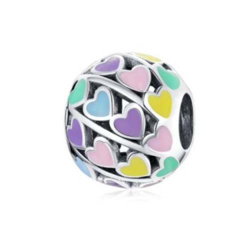 Engedd, hogy az ezüst charm varázsa elbűvöljön! Ez a 925 sterling ezüstből készült ékszer apró, színes szívecskékkel van díszítve, melyek vidámságot és szeretetet sugároznak. Tökéletesen illeszkedik bármely nyakláncra vagy karkötőre, így könnyedén a minde