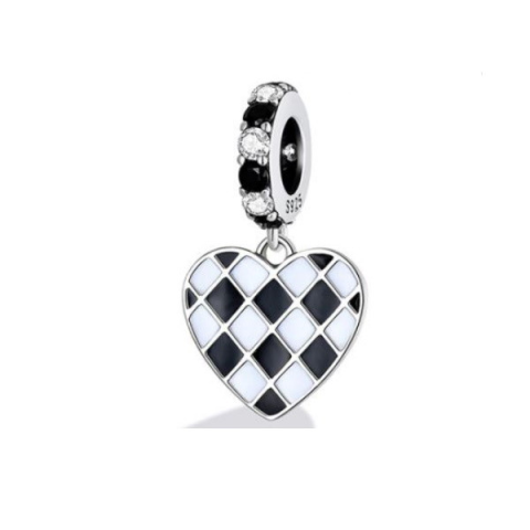 Fedezd fel az elegancia és az időtlen szépség kombinációját ezzel a lenyűgöző ezüst szív charmmal, amely fekete-fehér zománcozással és ragyogó cirkóniumkristályokkal van díszítve. A 925 sterling ezüstből készült charm finom kidolgozása és könnyed súlya –