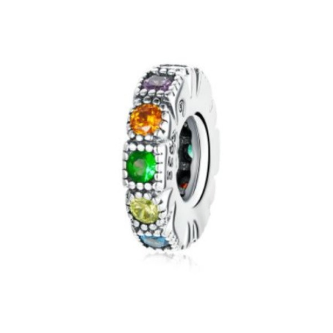 Egyedi ezüst charm, amely a szivárvány varázsát hozza el ékszereid közé. A 925 sterling ezüst alapanyag biztosítja az időtállóságot és minőséget, míg a színes cirkóniumkristályok ragyogóan emelik ki a charm szépségét. A mindössze 1.0 × 0.2 cm-es méretének