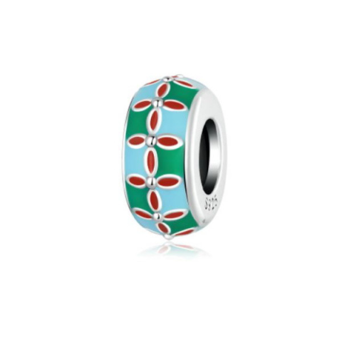 Engedd, hogy ez a gyönyörű ezüst charm virágos motívummal új színt vigyen ékszerkollekciódba! A 925 sterling ezüstből készült, aprólékosan kidolgozott charm a színes zománc díszítéssel minden karkötő és nyaklánc tökéletes kiegészítője lehet. A 1.0 × 0.5 c