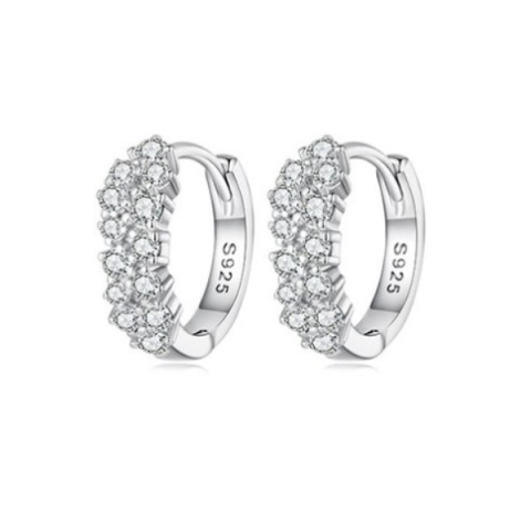 Ezüstből készült, fehér cirkóniumkristállyal díszített női fülbevaló. Mérete 1.2 × 0.45 cm, súlya 1.9 g. A termék anyaga: 925 sterling ezüst, amit a magyar szabályoknak megfelelően: 2g feletti termék esetén a termékbe ütött vagy gravírozott névjel és/vag