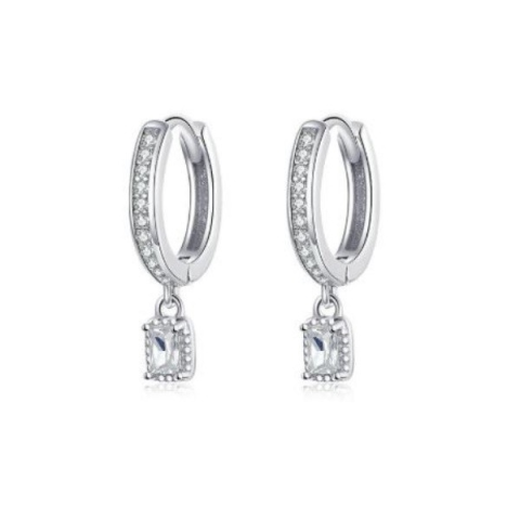 Ezüst fülbevaló fityegővel Elegáns, cirkóniumkristállyal díszített ezüst karikafülbevaló. Mérete 1,7 x 0,3 cm. A termék anyaga: 925 sterling ezüst, amit a magyar szabályoknak megfelelően: 2g feletti termék esetén a termékbe ütött vagy gravírozott névjel é
