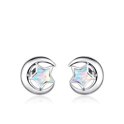 Ezüst fülbevaló, hold-csillag, ezüst Ezüstből készült bedugós fülbevaló. Holdat ábrázol, benne szivárványos csillaggal. Mérete 0.9 x 0.9 cm. A termék anyaga: 925 sterling ezüst, amit a magyar szabályoknak megfelelően: 2g feletti termék esetén a termékbe ü