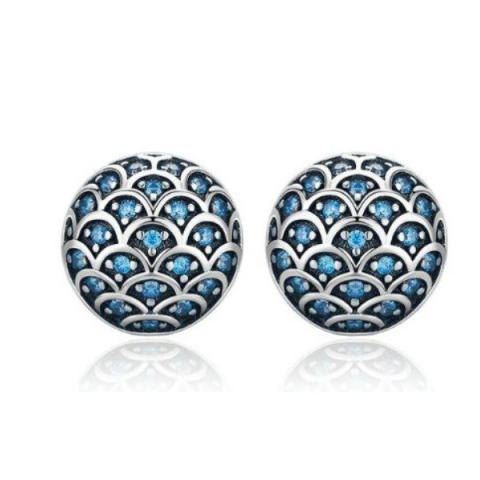 1 kép Ékszerkirály Ezüst fülbevaló hullám mintával, kék kristállyal (Pandora stílus)