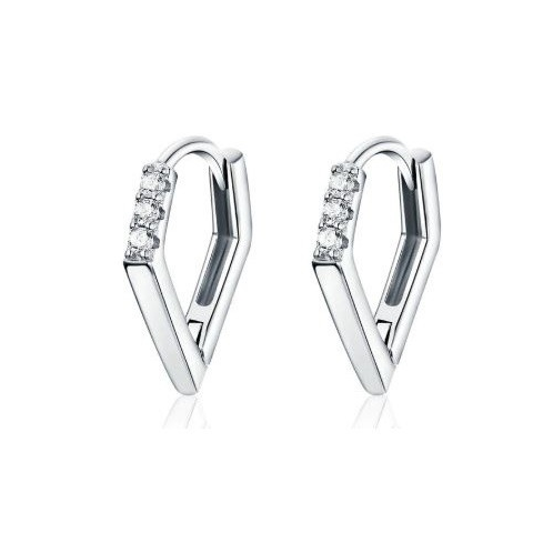 Ékszerkirály Ezüst fülbevaló, modern vonalú, cirkóniumkristállyal, ezüst színben