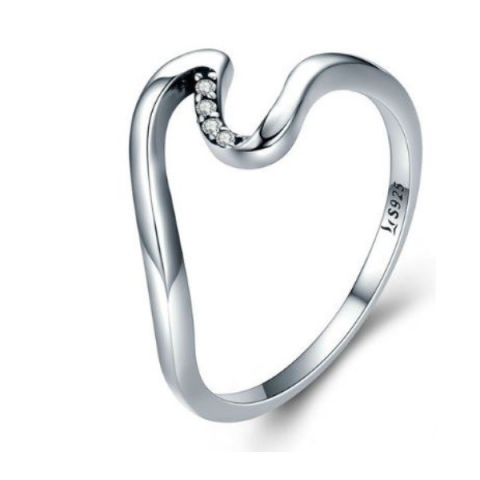 Ez a különleges hullámos formájú ezüst gyűrű tökéletes választás mindazok számára, akik szeretik az eleganciát és a modern dizájnt. A 925 sterling ezüstből készült ékszer apró, fehér cirkónium kristályokkal van díszítve, amely finom csillogást kölcsönöz n