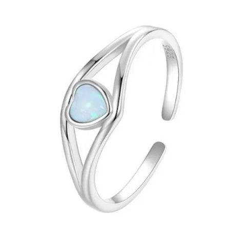 Ez a lenyűgöző, 925 sterling ezüstből készült gyűrű egy gyönyörű, kék opál szívvel díszítve tökéletes választás mindennapi viseletre vagy különleges alkalmakra. Az állítható méretű kialakításnak köszönhetően kényelmesen illeszkedik bármilyen ujjmérethez,