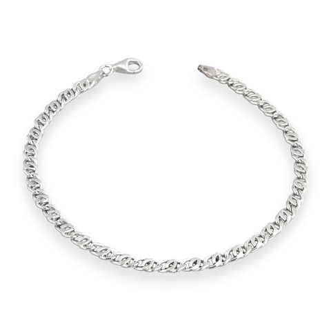 925 Sterling ezüst férfi karlánc. Súlya kb.: 2,6 g. Hossza kb 20,5 cm. Vastagsága kb.: 3,6 mm Ez az uniszex, nők és férfiak által is hordható ezüst karkötő karakteres megjelenést biztosít a mindennapokban. 20.5 cm hosszú, 3,6 mm széles és mindössze 2,6